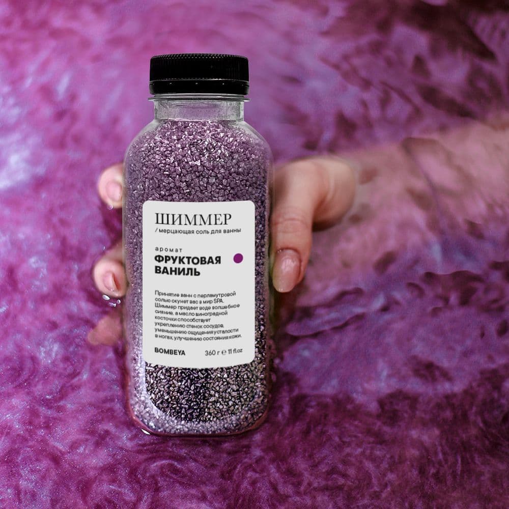 Мерцающая морская соль BOMBEYA с ароматом «Фруктовая ваниль» в пластиковой упаковке
